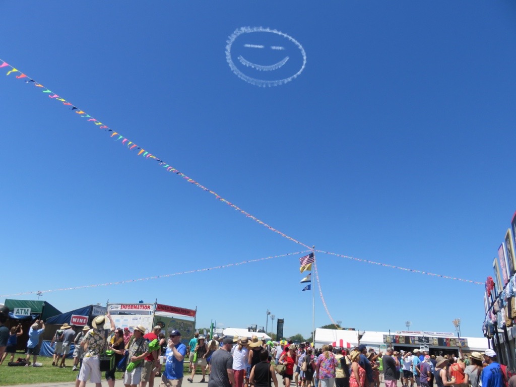 Now it's time for some final thoughts. It was certainly a different sort of trip, starting out alone due to Passover and in recovery mode from an awful flu bug, then the news of the sudden passing of Prince on the day before the festival started, added to the sense of loss already being felt at Jazz Fest as they remembered Allen Toussaint especially but also B.B. King, who passed in the year since the last Jazz Fest. Then, after Laurie arrived, the incredible weather on the last Saturday and Sunday.