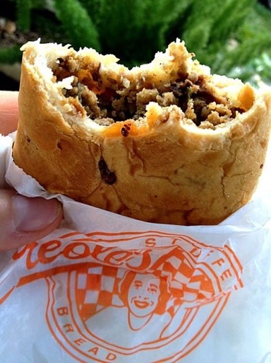 This time I opted for a stuffed bread. Mostly because I think Merline Herbert is so cool. The stuffed bread is great, but when it's served by such a nice lady it just makes it that much better. Read more about Creole Lunch House, Ms. Merline, and stuffed bread on Day 8 in 2015, Day 8 and Day 11 last year, and even on Day 3 this year. I'm making up for not trying this treat until 2015 in a big way.