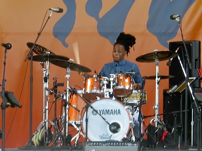 When Laurie veered off across the track to the Jazz and Heritage stage and then Congo Square, I continued on to the Jazz Tent for Terence Blanchard and the E-Collective. This awsome band is performing a hybrid of serious 1970's funk, contemporary R&B, and hard rock that speaks to the social and political turmoil of our time.