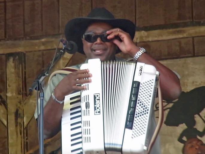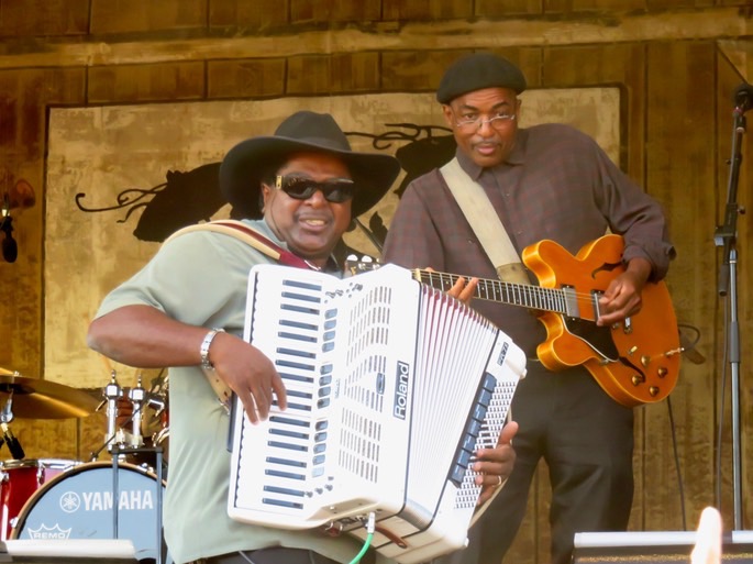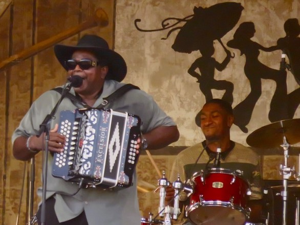 Nathan formed the Zydeco Cha-Chas in 1985, and the rest, as they say, is history. His son Nathan Jr. also has a band, Lil' Nathan and the Zydeco Big-Timers, who we have seen a couple of times at Jazz Fest (Day 3 in 2012 and Day 8 in 2014), although not this year because they were due to play during the lengthy rain delay last Sunday.