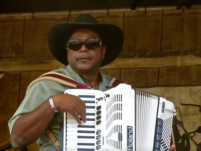 You can tell Nathan Williams Sr. has a great time entertaining people. The music is just nonstop fun as he struts from one side of the stage to the other, spinning and going down to one knee, all while playing his trademark white piano accordion. When he ends a song, he smiles broadly, looks at the crowd, and says, "Was that all right for you?"