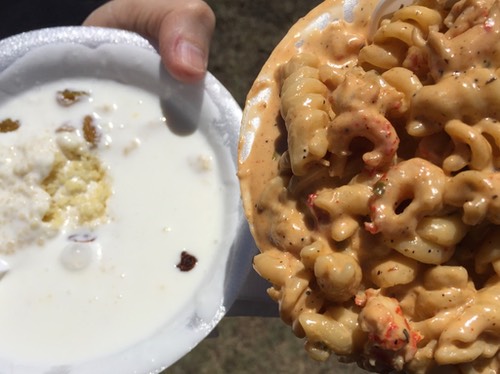 For me it was Crawfish Monica from Kajun Kettle Foods. I've had this in 2013 (Day 4), 2014 (Days 2 and 9), and 2015 (Day 4). It's nothing complicated, just rotini, crawfish tail meat, onion, garlic, Creole seasonings, cream, wine, salt, pepper, and butter, but does it ever taste good. I'm not sure how I missed it last year. It could be that Creole's stuffed bread is right next door and lures me in whenever I'm thinking of Crawfish Monica.