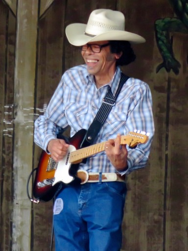 The Creole Cowboys include noted musician, composer, writer, teacher, and scholar D'Jalma Garnier III on guitar. Garnier is an ethnomusicologist of Louisiana Francophone cultures and has published a method book with a collection of 14 songs by the masters of Louisiana Creole fiddle music along with an instructional DVD with supplemental performances. With Broussard's band, he usually plays bass or guitar, but today, for the first time that I have seen, he picked up a fiddle and did an extended solo with the band. I must say it was one of the best I have ever heard. A lot of it is on my video linked below.
