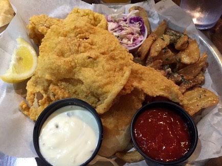 We ended up at a local chain that we have been to before, called the New Orleans Hamburger ans Seafood Company, at the corner of Decatur and Toulouse Streets. It's nothing fancy, but serves some pretty good food that does not break the bank. I had their signature thin-cut fried catfish platter with "Mardi Gras slaw" and garlic herb fries. Laurie had BBQ shrimp pasta, which was ziti with grilled shrimp and a New Orleans style BBQ cream sauce. I had an Abita Amber draft and Laurie, who is really getting into the IPA's on this trip, had NOLA's Hopitoulas.