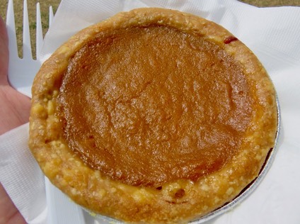 The shrimp bread was gone before we arrived at the Congo Square food area, so, to keep myself occupied while she ate, I got a miniature sweet potato pie from Marie's Sugar Dumplings. I've had Marie's sweet potato turnover before, on Day 5 in 2012, Day 9 in 2013, and Day 2 in 2015. The pie wasn't as sweet, but it was every bit as good as the turnover. See those places and also tomorrow for some more about Marie's Sugar Dumplings.