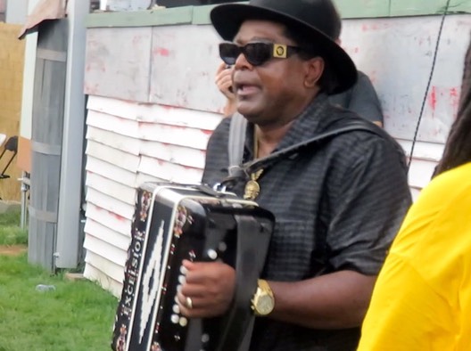 Laurie stayed for a couple of minutes but headed over to the Gentilly stage to hear some swamp pop from C.C. Adcock and his band, the Lafayette Marquis.