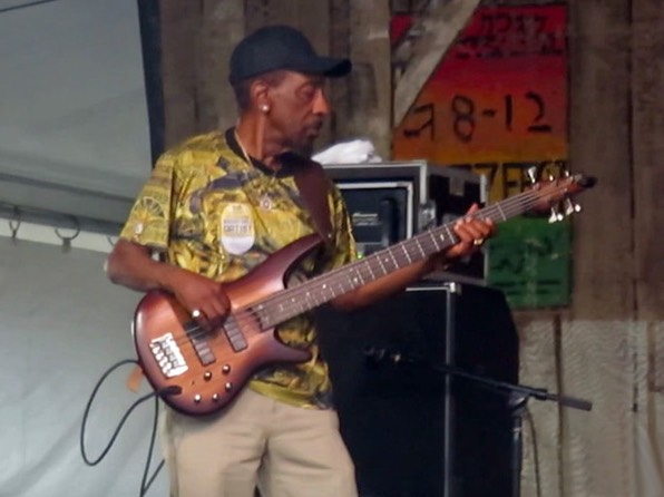 The band is Dennis Paul Williams, Nathan's brother, on the jazzy guitar, Junius Antoine on the bass, Djuan Francis on the drums, and Clarence Calais on the scrubboard. There is a lot of family connection in this band. Dennis Paul is Nathan's brother, Clarence is his brother-in-law, and Djuan is his godson.