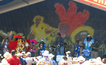 Big Chief Juan Pardo and Jockimo's Groove, with Billy Iuso on guitar, were onthe Jazz and Heritage Stage to start the day