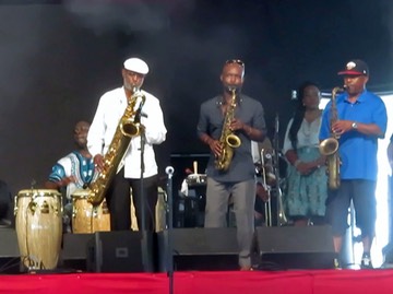 Blodie's group of friends is a virtual who's who of New Orleans modern jazz musicians.That's Alexei Marti at the percussion and Roger Lewis playing the baritone sax.