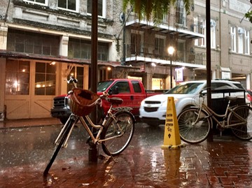 We took advantage of a break in the rain to dash to Café Envie,where we had Irish coffees while we watched another storm roll through