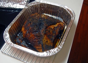 A brined turkey breast with a molé crust