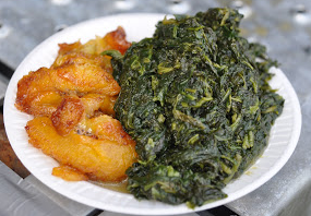 We got some food at the Congo Square food area after the show. Laurie got the jama jama (spicy sauteed spinach) and fried ripe plantains from Bennachin Restaurant of New Orleans (a repeat from last year) and I had a (warm) sweet potato turnover from Marie’s Sugar Dumplings of Marrero, Louisiana (also a repeat from last year and something I am glad is not available locally!).