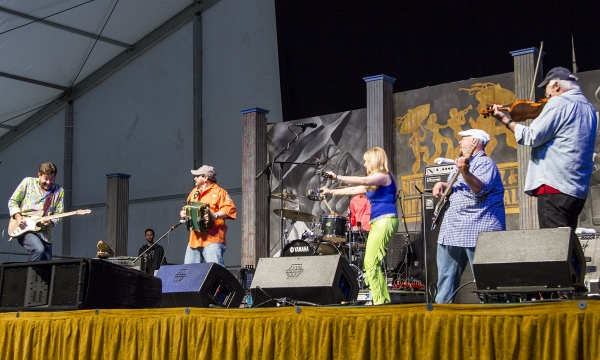 We ventured back outside and walked over to the Fais Do Do Stage, where a huge crowd was already enjoying Michael Doucet and his traditional Cajun band BeauSoleil, up there on the list of artists not to miss at Jazz Fest this year. They were joined by accordionist Jo-El Sonnier. We were pretty far back, and the speakers weren't carrying very well with all the wind, but what we saw of this performance was still really good.