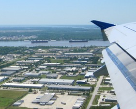 No morning drill today. We were even up early enough to have some food at the Staybridge spread. But mostly we were packing and getting ready to go. We definitely enjoyed our time at the Staybridge, and while the one-bedroom mistake was nice, it didn't really add to or detract from the stay. The location, the kitchen, and the really friendly staff make the difference for us, more than making up for the hiccups of the place (because it's an extended-stay hotel, daily service isn't what you would get in a regular hotel, the air conditioning just barely holds its own, and the lack of food late in the breakfast hours is annoying ... although getting food first thing at Jazz Fest is a very pleasant replacement). We checked out and were on the airport shuttle around 9:45. There was a nice little tour around the Central Business District while we picked up some more travelers, and we were through security and at the gate in plenty of time for our 12:35 flight back to Dulles.
