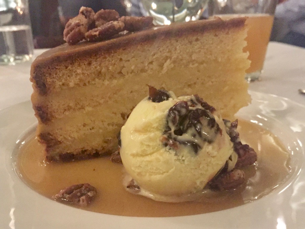 For dessert, we had a rum pineapple doberge cake with rum cherry ice cream, caramelized white chocolate, and more candied pecans. The food at this place is really good, and the service is relaxed and efficient. I'm sure we will be back.