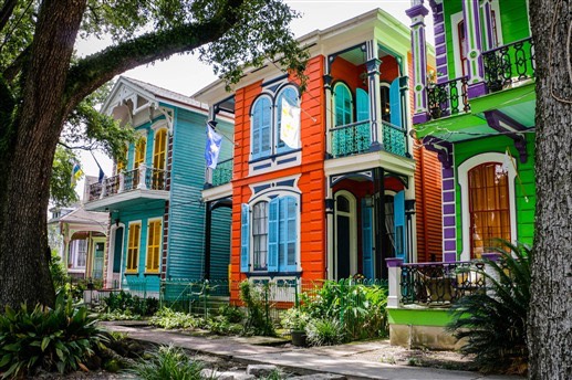 Esplanade Avenue stretches roughly 3 miles from the banks of the Mississippi River to the geographic heart of New Orleans at the edge of City Park. Described as a storehouse of 19th-century architectural types and styles, it forms the downriver edge of the French Quarter before passing through some of the city's oldest neighborhoods. Oak-lined, bisected by a grassy neutral ground, and featuring multicolored homes of all shapes and sizes, the avenue has been iconic for centuries.