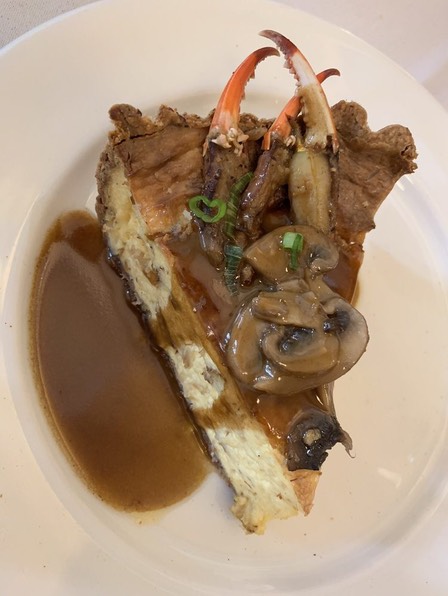 One of the highlights on the menu is the savory crabmeat cheesecake appetizer. It has a pecan crust and is served with a wild mushroom saute and creole meuniere. It doesn't really have the consistency of a cheesecake. It's much fluffier, more like a quiche or a soufflé. But however you describe the thing, it's really good.