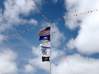 There were some clouds this morning, but by mid-day the sky was that gorgeous shade of blue one sees down here. When we left the Staybridge for the shuttles at the Sheraton, the temperature was 71 on its way up to a pretty comfortable 79. There was a very light breeze off of the lake as opposed to the Gulf, and the humidity was around 60 to 65 percent. So it was warm for sure. This evening, the temperature was still in the upper 70s.