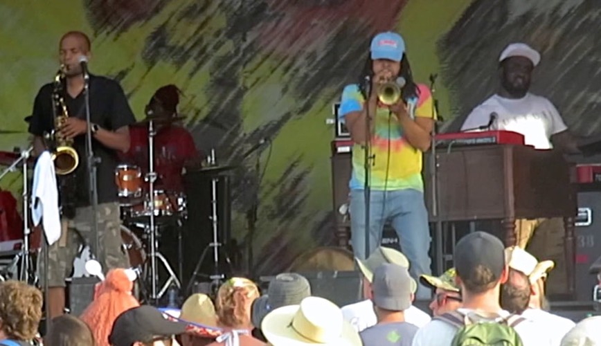 The Stooges present a raucous brass-band show, which is getting more hip-hoppy every time we see them. That's not a negative. They were having a great time, as was the big crowd ending their Jazz Fest at the Jazz and Heritage stage, as we have done ourselves.