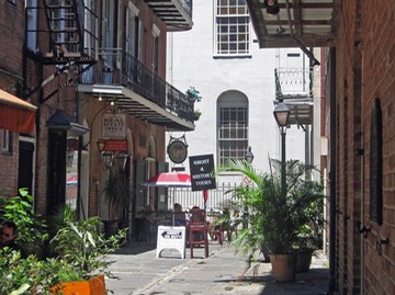 Alley on Saint Peter near Jackson Square, St. Louis cathedral at the end