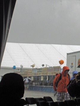 The skies opened to an absolute downpour, so we ran to the Jazz Tent