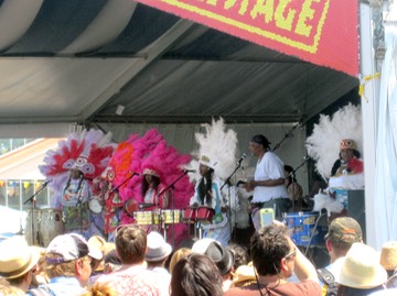 Cha Wa was laying down some bluesy Mardi Gras Indian funk at the Jazz and Heritage Stage