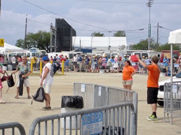 The shuttle bus dropoff zone on Saturday morning. That's the Gentilly Stage in the background.