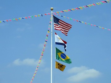 The flagpole at the center of Jazz Fest on a beautiful, breezy day