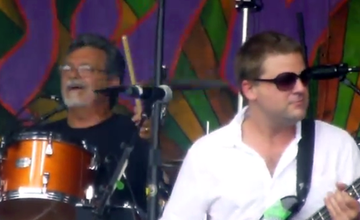 Laying down the backbeat were Frank Bua Jr. of the Radiators on drums and Dave Pomerlau, who plays with Johnny Sketch and the Dirty Notes band, on bass