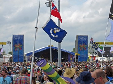 We were toward the back of the crowd to hear Galactic’s Sunday afternoon set