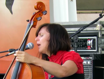 She uses digital technology to accompany herself. The performance was unbelievably good.