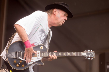 Laurie stayed out in the Acura Stage rain and mud to hear Neil Young (not my photo)