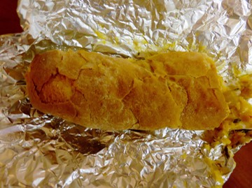 The wrapper contained crawfish bread, a cheesy, crawfishy treat