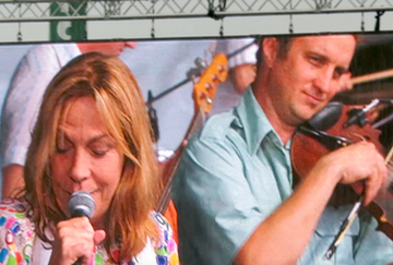 Rickie Lee Jones was singing with the Lost Bayou Ramblers as the storm continued.I couldn't zoom through the rain; the two pictures of her are from the video board.
