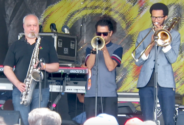 Vincent Panella on sax, Ashlin Parker on trumpet, Michael Watson on trombone