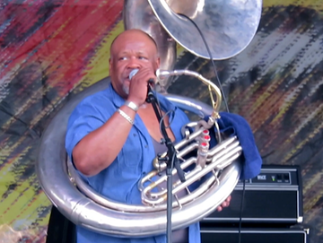 Kirk Joseph introduced the Mardi Gras Indians, saying: "Y'all are in the right spot. The shit's that about to go down