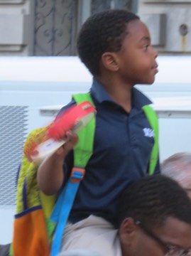 A young fan brought his own tambourine