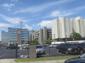 We usually see the huge new medical complex from Canal Street; this is from Poydras Street
