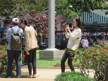One picture-takes while two review a picture taken