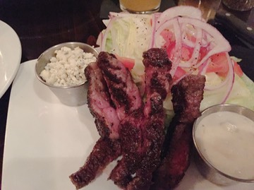 Steak salad with an iceberg wedge, tomato, and bleu cheese