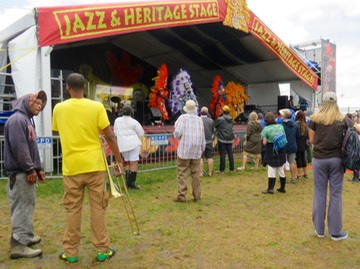 Back to the Jazz and Heritage Stage to see Big Chief Bird and the Young Hunters Mardi Gras Indians