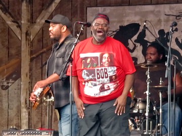 Between sets, we went to the Fais Do Do Stage to hear the sacred steel of the Lee Boys
