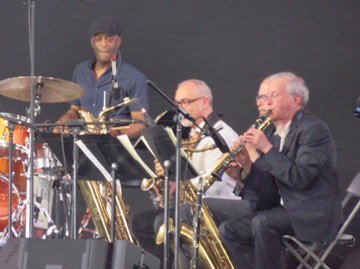 The drummer is Donald Edwards. Doug Wieselman, Peter Apfelbaum, and Erik Lawrenceplay the saxophones and clarinets