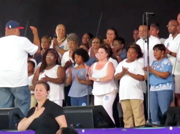 In the Gospel Tent, the St. Joseph the Worker Music Ministry ... and their sign interpreter