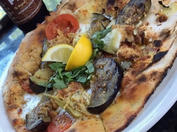 Laurie had fried oysters, artichokes, and eggplant on hers