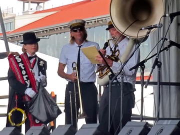 Jane Harvey Brown, now the sole Grand Marshall, placed a pair of Schmidt'scolorful shoes on a stool at the front of the stage