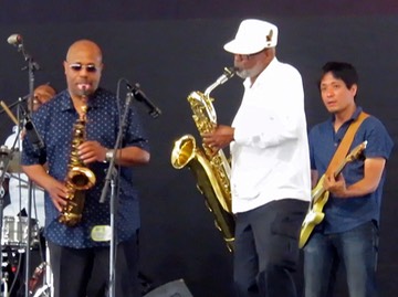 Roger Lewis on baritone sax, Takeshi Shimmura on guitar