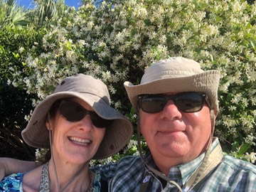 Our annual selfie with the honeysuckle outside the WWOZ tent
