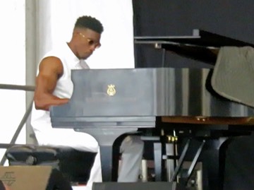 In the Jazz Tent, Kyle Roussel led a brilliant tribute to New Orleans piano masters,entitled "The History and Future of New Orleans Piano"