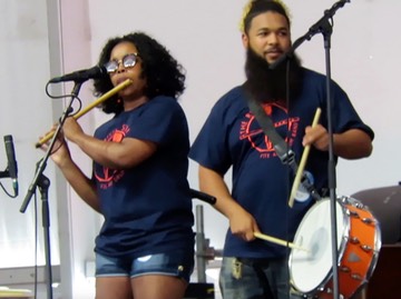 Next, in the Blues Tent, Otha Turner's granddaughter Shardé Thomasand the Rising Star Fife and Drum Band